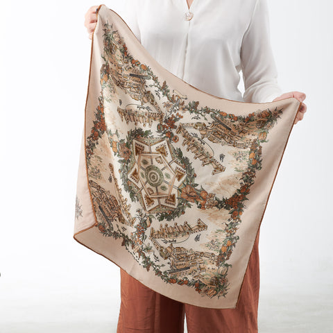 Encore Lifestyle 真羊毛蠶絲圍巾|城牆與花